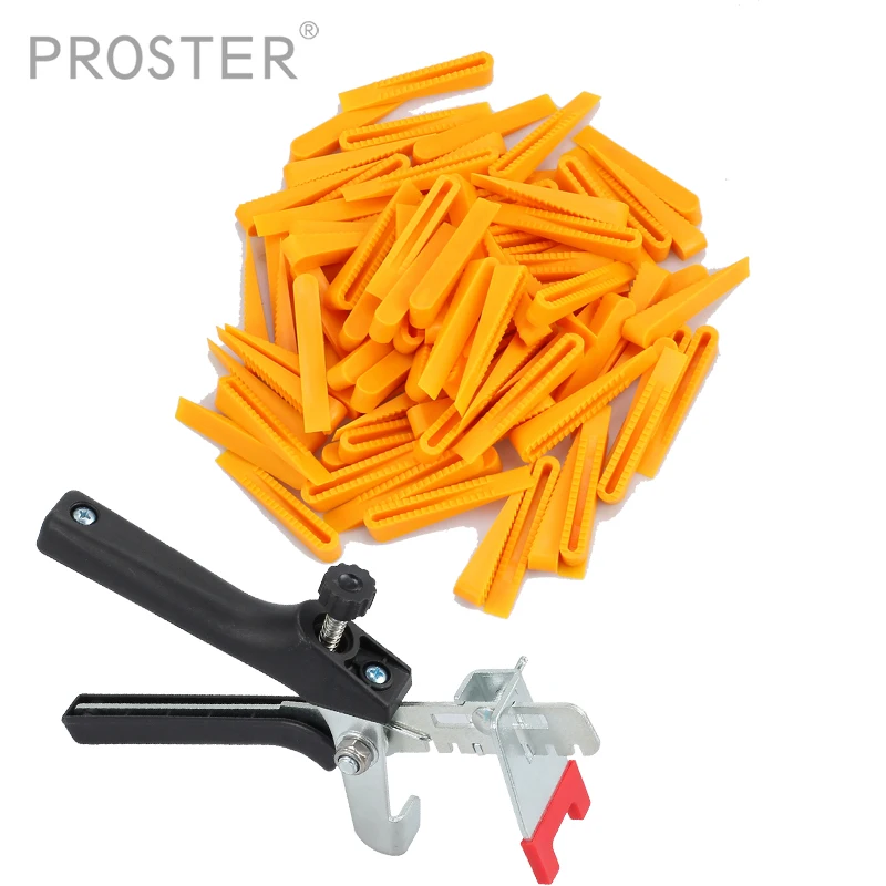 Good Price of Proster Large Tile Flooring Wall Leveling Spacer D Type System Pliers Tool 100 Pcs Wedges & 100 Pcs Clips with a Plier Tool Kit